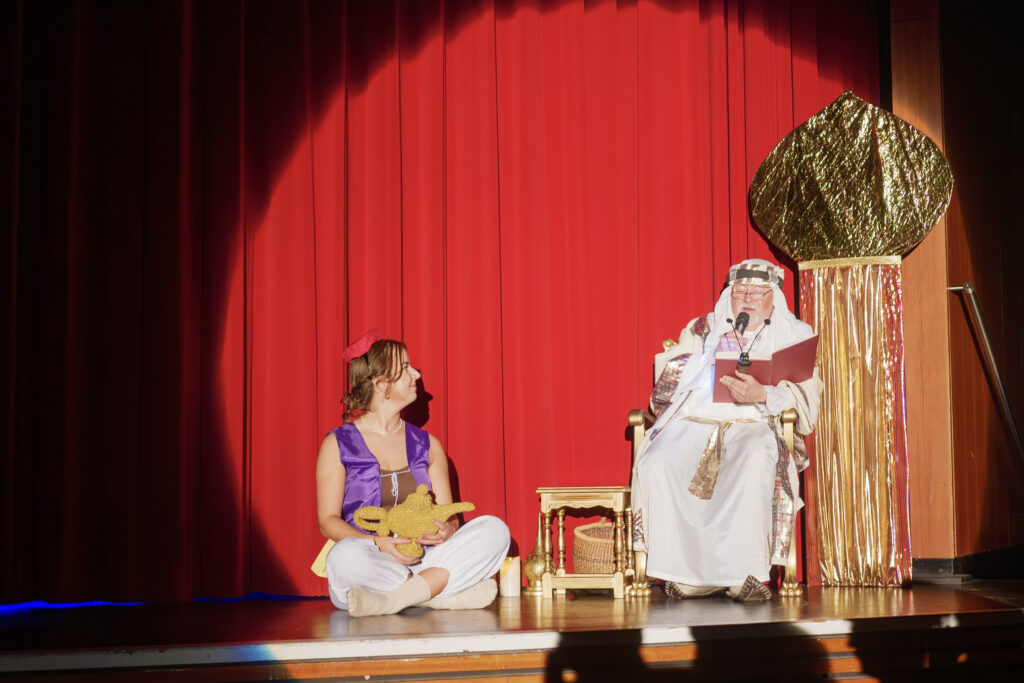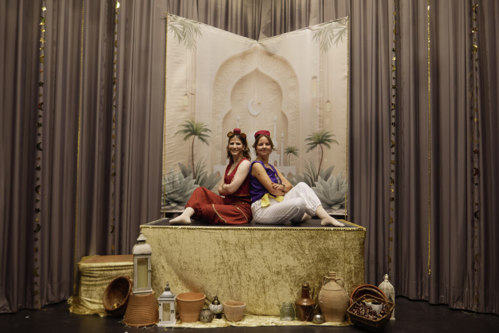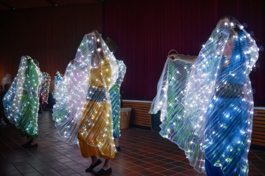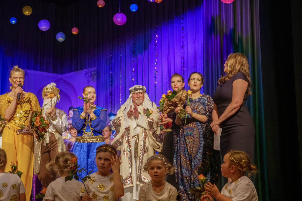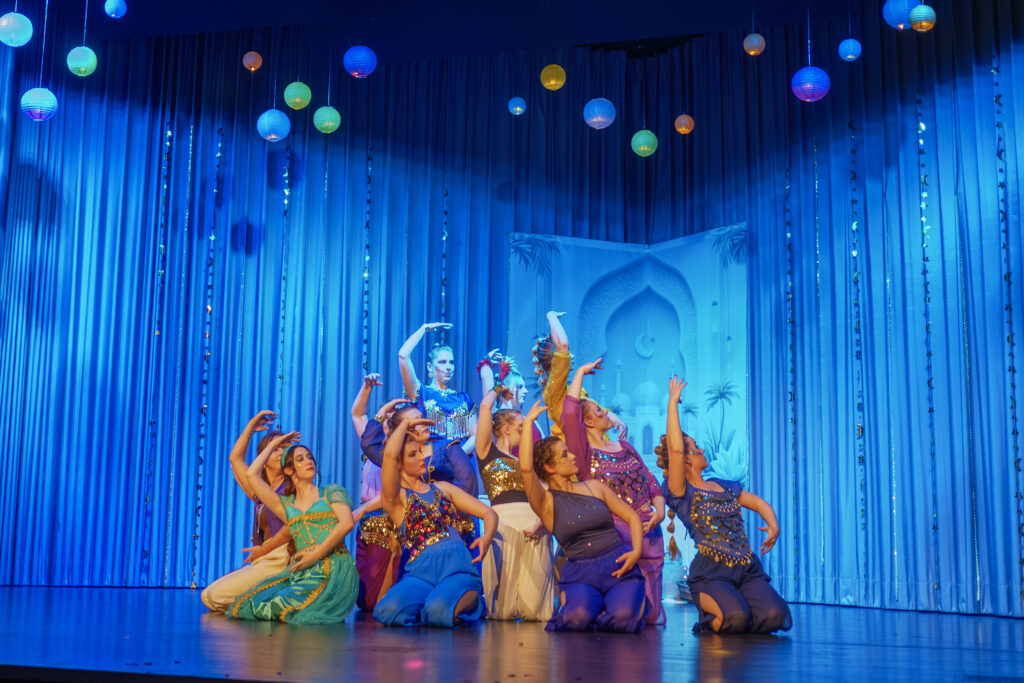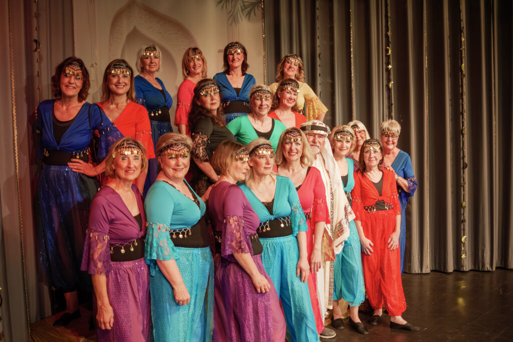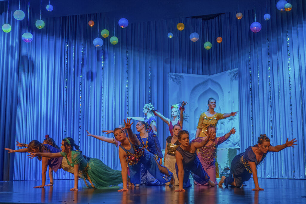 600 Zuschauer in der vollbesetzten Aula ließen sich von 120 Tänzerinnen in die Welt von „Tausendundeiner Nacht“ verführen. Einen ganzen besonderen Part übernahm Pfarrer im Ruhestand, Klaus Sommer, als Scheich in der Erzählerrolle.