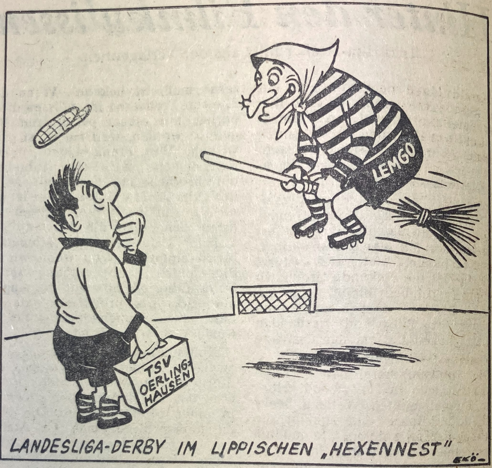 Etwa 600 westlippische Fußballanhänger jubelten mit elf überglücklichen Oerlinghauser Spielern, als der Halblinke Sieveke zehn Minuten vor dem Schlusspfiff eine Flanke von Großbongardt aufnahm und den Ball mit einem 30-m-Schuss durch ein Beingewirr von Freund und Feind hindurch zum 4:3-Sieg des TSV Oerlinghausen einschoss, womit die Paderborner 0:3-Niederlage wieder wettgemacht und der Anschluss an die Spitzengruppe der Landesliga hergestellt wurde.