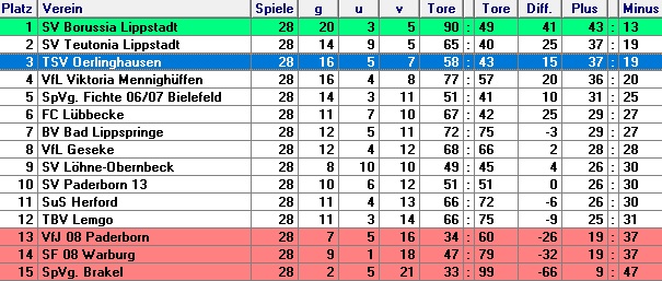 TSV Oerlinghausen zeigte eine gleichwertige Leistung und verlor unglücklich. Bei Bestrafung der o.a. Fouls der Lippstädter Abwehr in den ersten 15 Minuten hätte das Resultat ebenso für die Lipper ausfallen können. „Borussia“ Lippstadt war technisch besser, ohne zu überzeugen.