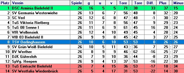 | Bezirksliga, Staffel 2, ... | So., 19.04.1965 | TSV Oerlinghausen - VfB 03 Bielefeld II | abgebrochen nach 70 Minuten |