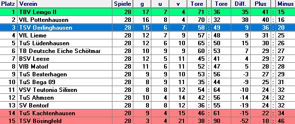 | 1. Kreisklasse Lemgo, Spiel 16 | So., 05.02.1967 | TSV Oerlinghausen - TB Deutsche Eiche Schötmar | 1:3 (0:1) |