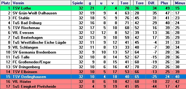 | Bezirksliga Staffel 3, Spiel 32 | Mo., 04.06.1979 | SV Grün-Weiß Dalhausen - TSV Oerlinghausen | 1:0 (0:0) |