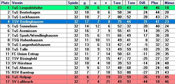 | Kreisliga A Lemgo, Spiel 25 | Sa., 06.04.1985 | TuS Leopoldshöhe - TSV Oerlinghausen | 1:1 (1:0) |